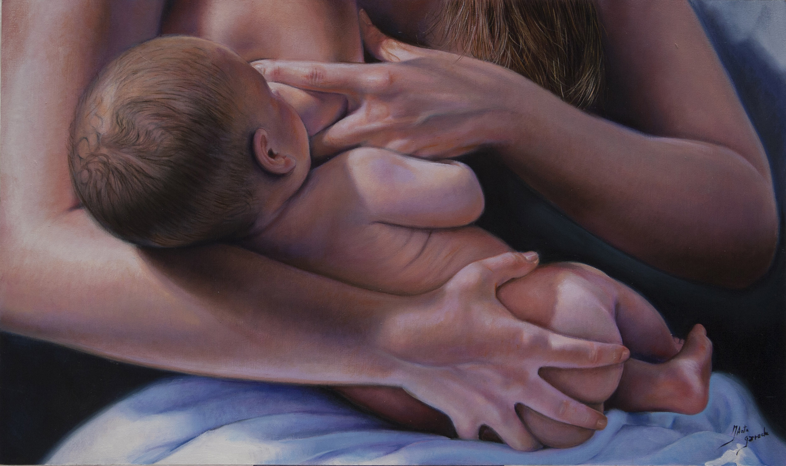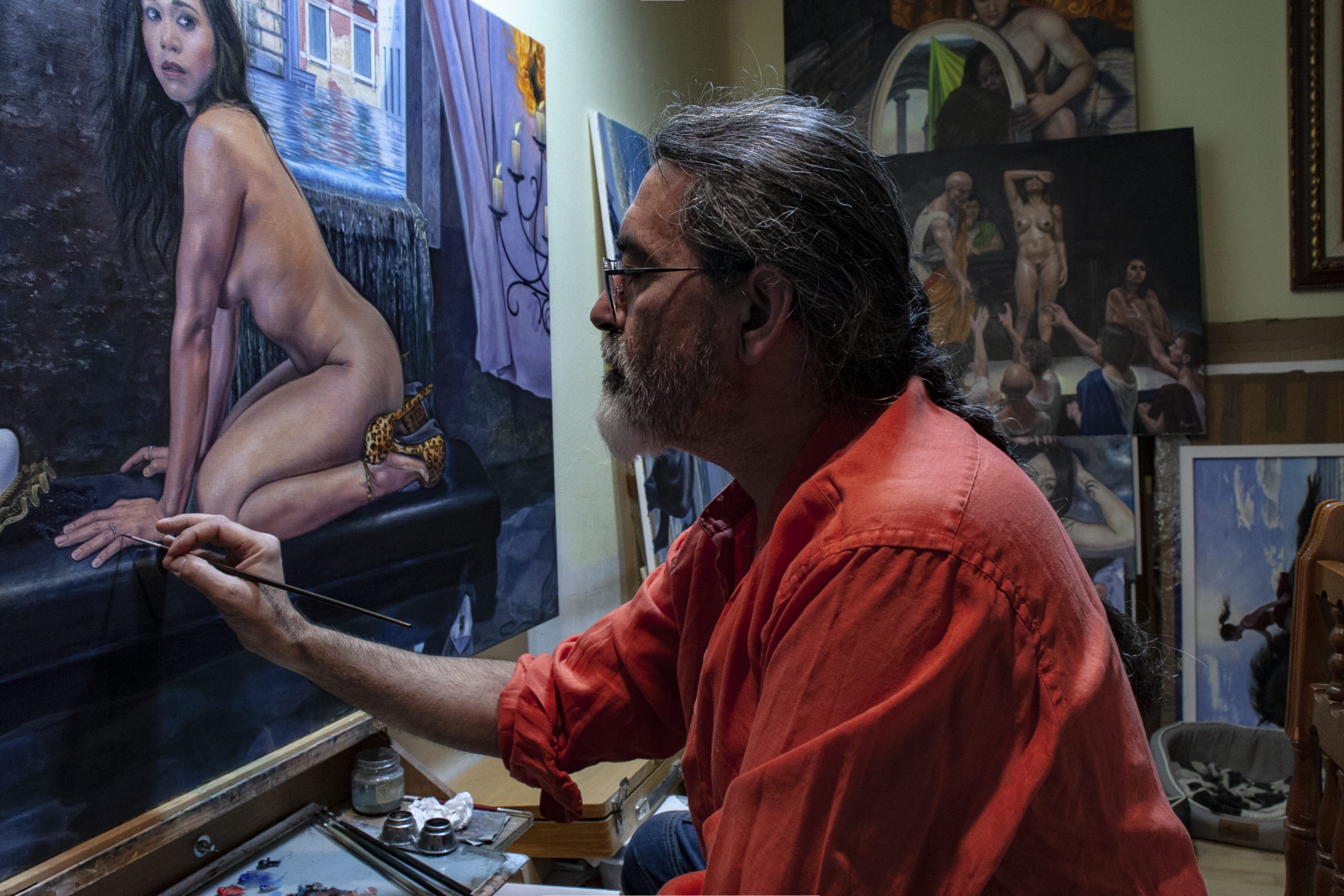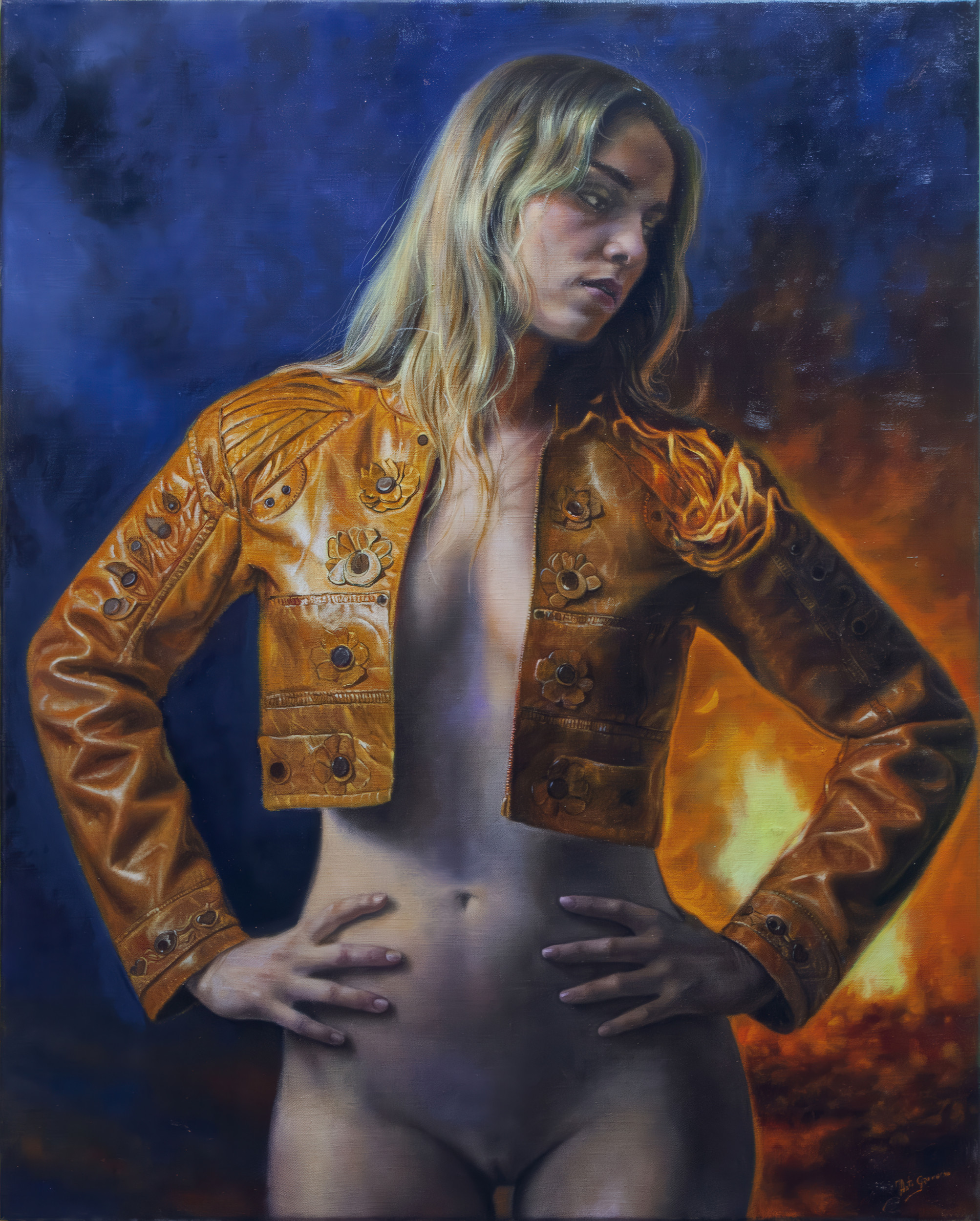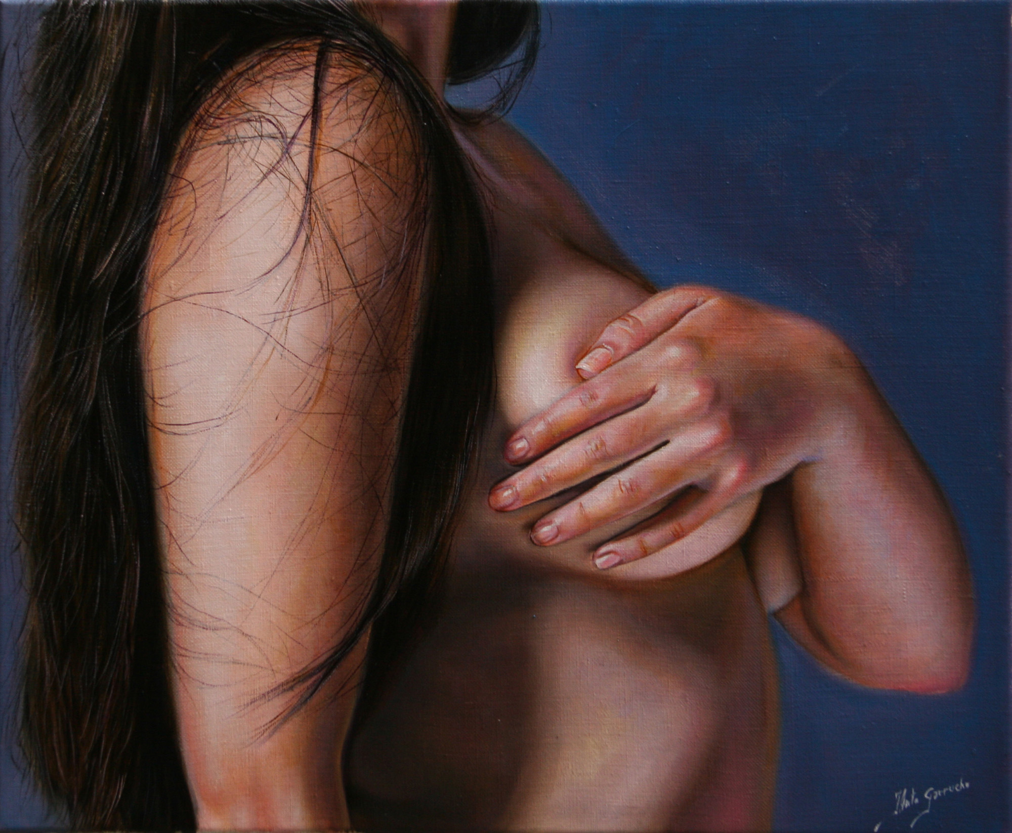 En mis desnudos femeninos, busco una belleza natural, sensual y siempre respetuosa, donde el cuerpo y el paisaje a veces se funden en una misma armonía visual. También hay obras con una fuerte carga simbólica, que invitan a detenerse y mirar más allá de lo evidente.